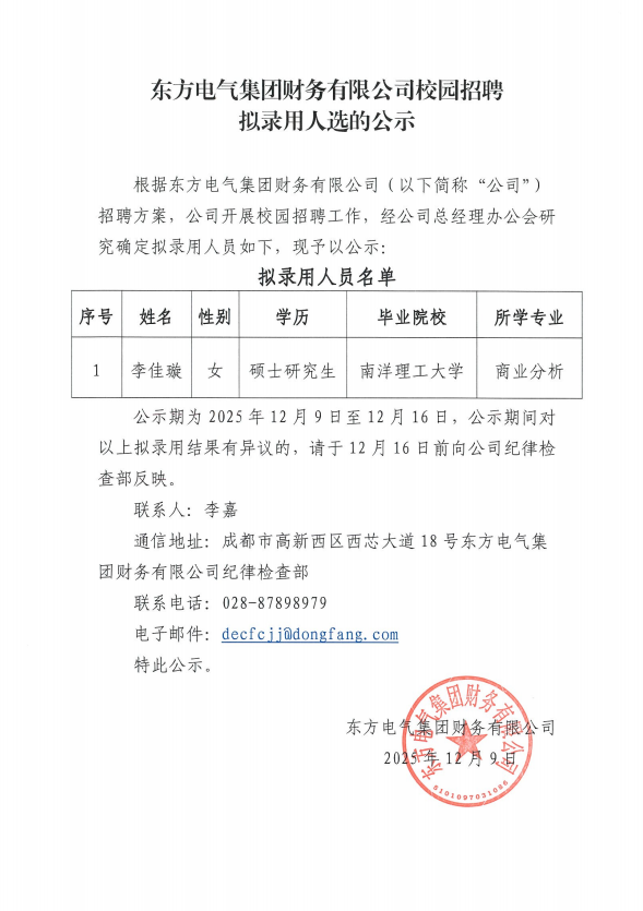 pa旗舰厅官网集团财务有限公司校园招聘拟录用人选的公示